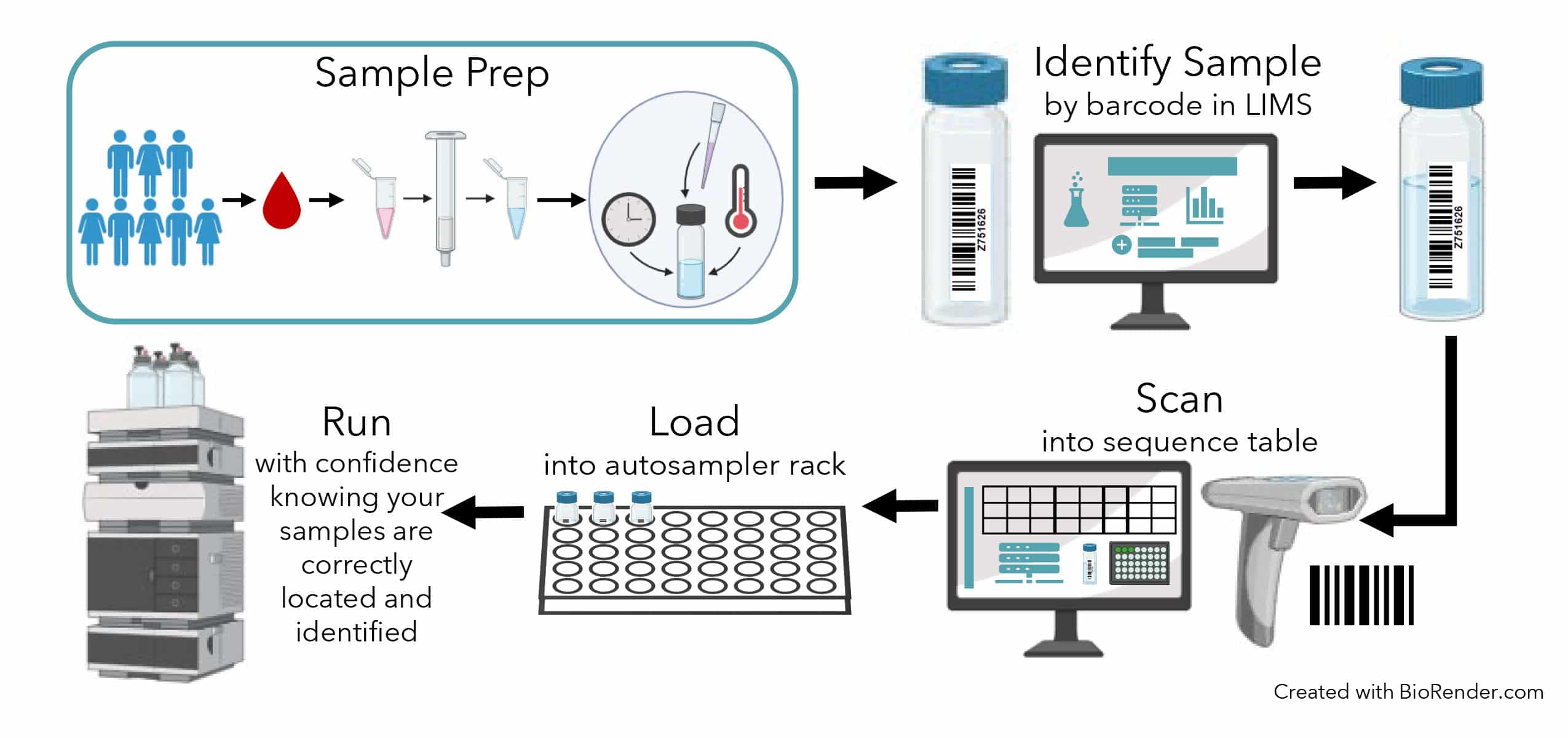 Integrating barcoded chromatography vials into your lab workflow or automated prep systems is seamless. Simply add a USB scanner to your equipment, and experience a continuous workflow from sample preparation to data management: